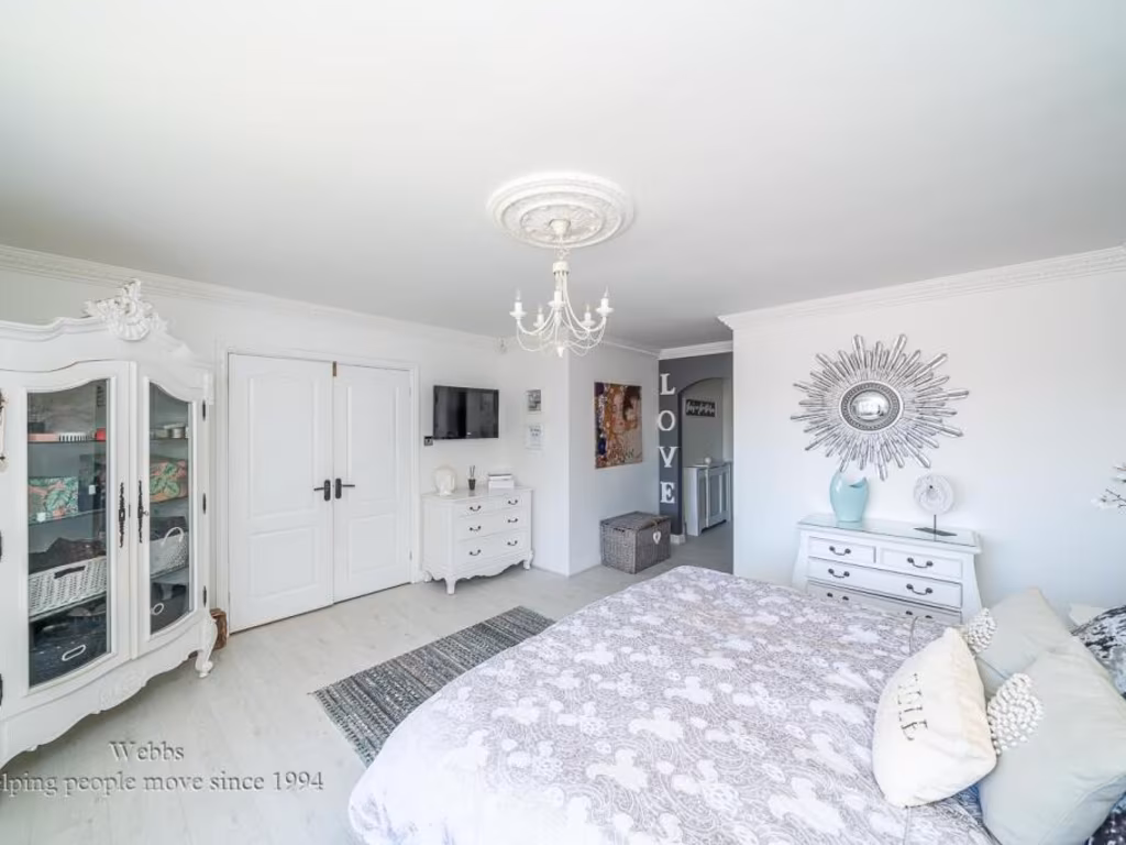 Set on a generous plot in Cheslyn Hay, this individually designed five-bedroom detached house balances family-sized accommodation with modern styling. The ground and upper floors provide flexible living: a master bedroom with dressing area and en-suite, two ground-floor doubles with a Jack-and-Jill shower, plus two further doubles and a study landing on the second floor.