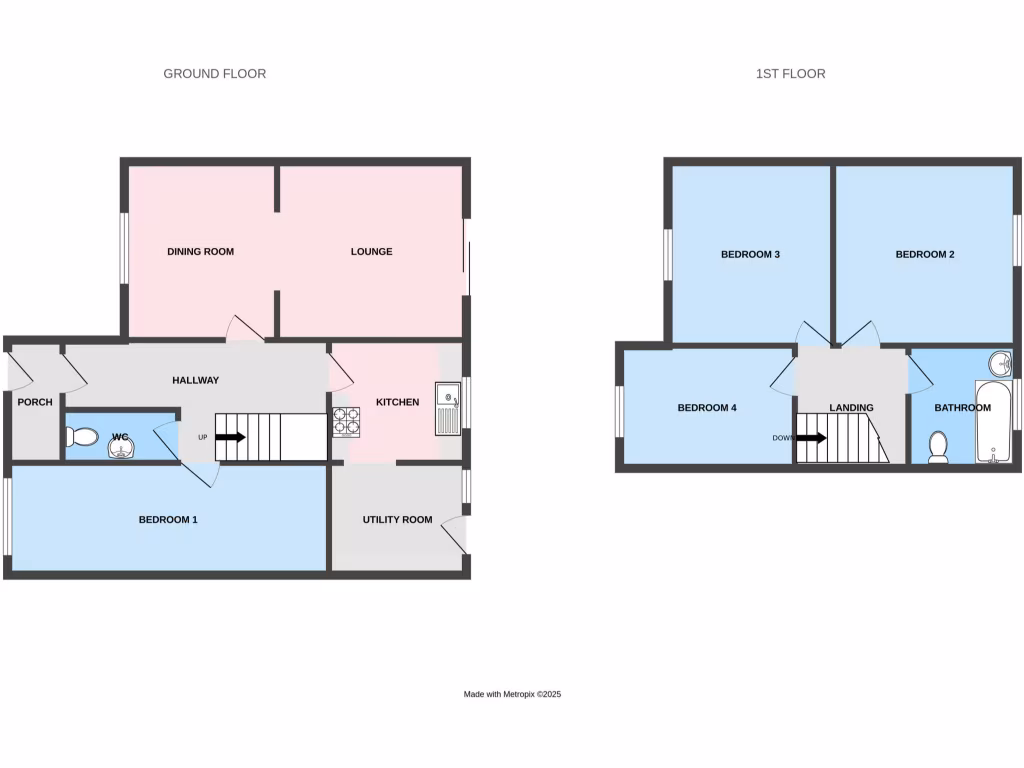 This four-bedroom semi-detached home on Teagues Crescent offers practical family living with flexible ground-floor accommodation and outdoor space. The layout includes a lounge, separate dining room, modern-fitted kitchen with utility, and a ground-floor double bedroom plus guest cloakroom — useful for multigenerational households or visitors.