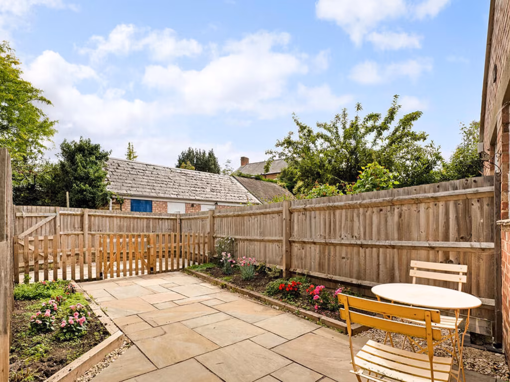 - Enclosed, landscaped garden with paved seating and ornamental flowerbeds