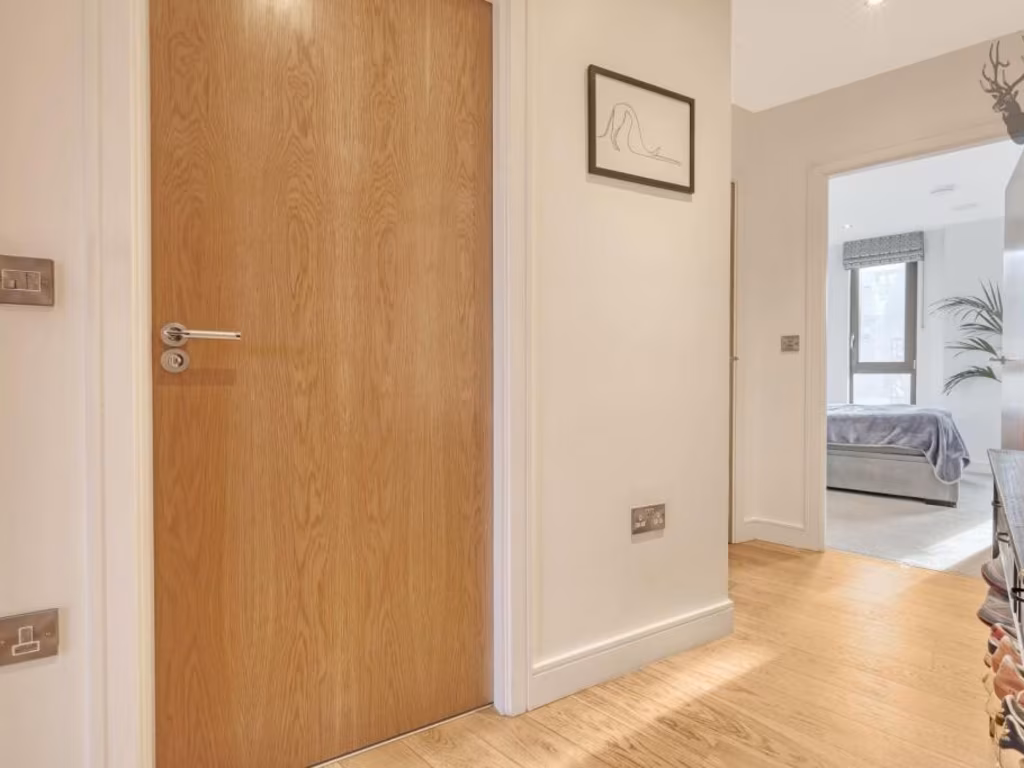 Step into modern comfort with this enchanting one-bedroom apartment on Old Ford Road, boasting breathtaking views of both the picturesque Victoria Park and the tranquil Regents Canal. Positioned on the first floor of a boutique development housing only four apartments, this residence offers a rare blend of exclusivity and urban convenience. With a generous open-plan living area complemented by high ceilings and large dual-aspect windows, the space feels expansive and airy. The stylish kitchen features sleek quartz countertops and high-end integrated appliances, ideal for a contemporary lifestyle.