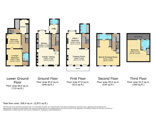 Nearly 2,900 sq ft across five storeys including high ceilings and large windows