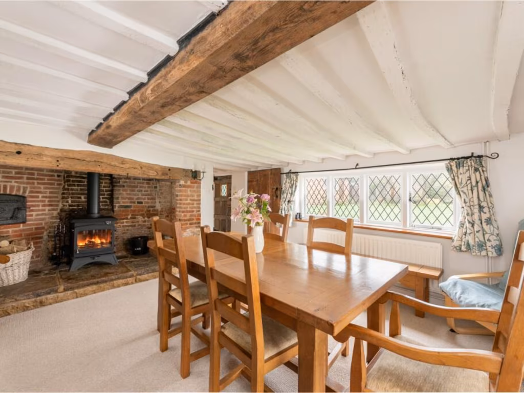 Discover a charming piece of history in this Grade II listed Tudor cottage, offering four spacious bedrooms and an abundance of rustic character throughout its three floors. Built in 1600, the property boasts stunning original details, such as inglenook fireplaces, exposed beams, and traditional latch doors. Enjoy cozy evenings by the wood-burning stoves in the inviting sitting and dining rooms, or unwind in the bespoke kitchen featuring wooden units and a butler sink.