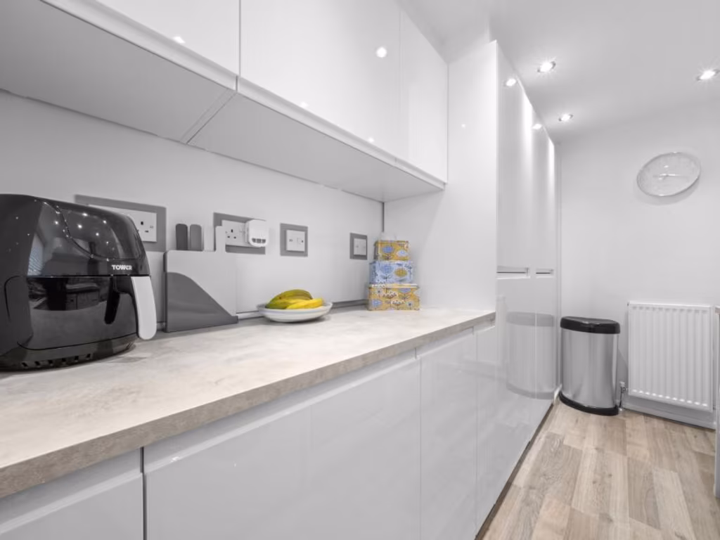 This well-presented two-bedroom upper flat on Westerhouse Road offers compact, move-in-ready living with a sunny south-facing balcony and modern fittings throughout. The living room and bedrooms are bright and neutrally decorated, while the high-gloss kitchen and smart bathroom provide contemporary convenience. Excellent built-in storage and double glazing add practical everyday benefits. Tenure is freehold and council tax band is very low, helping running costs.