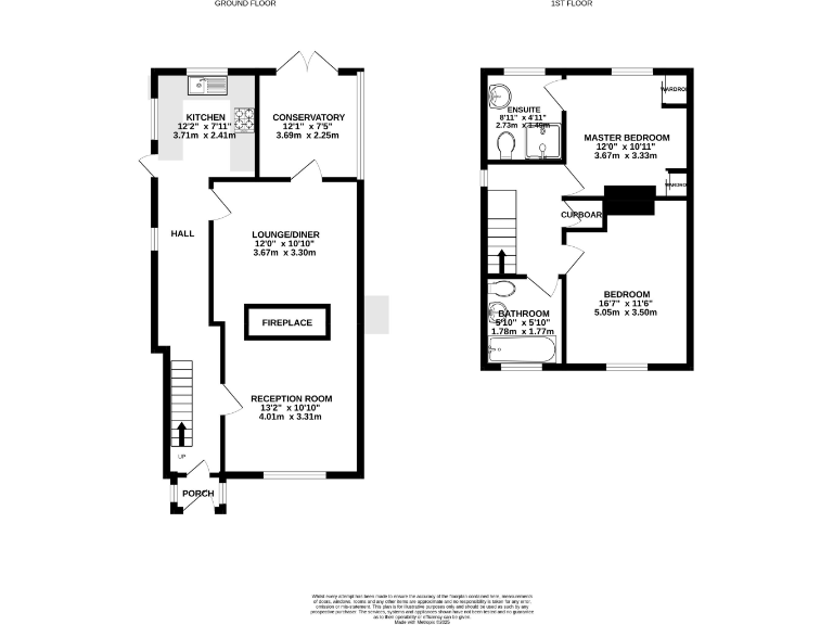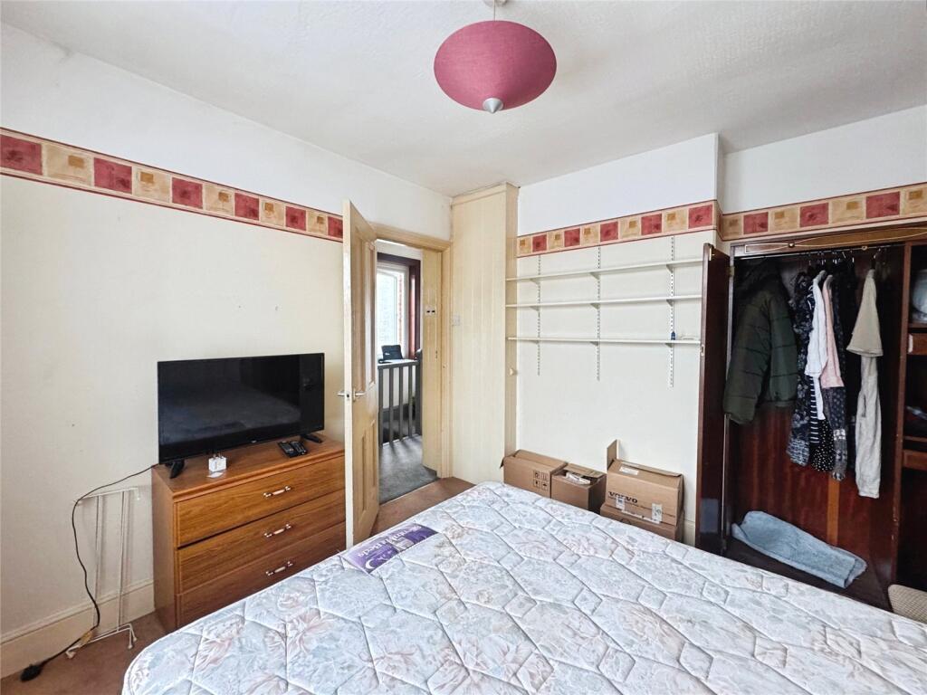 Both upstairs bedrooms are generous in size; the master benefits from an ensuite while a separate family bathroom serves the second bedroom. The home has double glazing and gas central heating via boiler and radiators, but the interior requires refurbishment throughout and there are signs of dated decor and occasional mould that will need addressing. The plot is small and the garden modest, so outdoor space is limited compared with larger suburban plots.