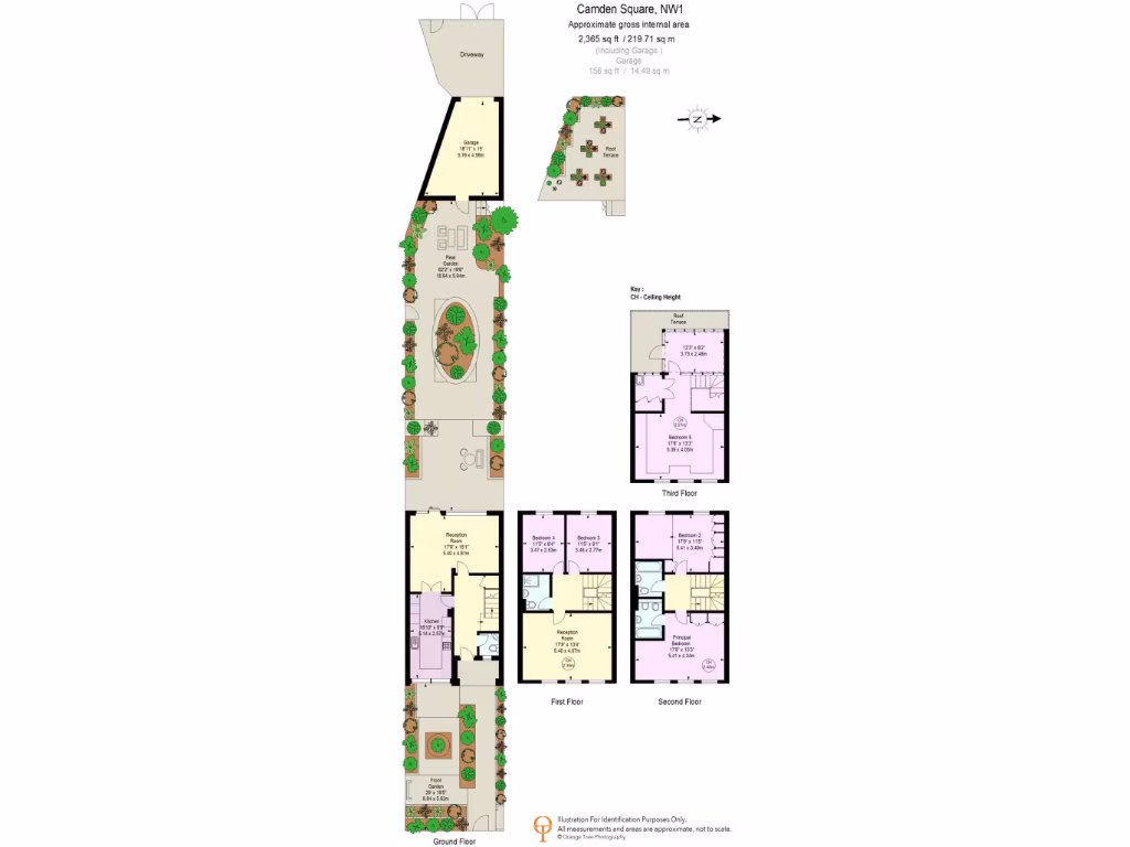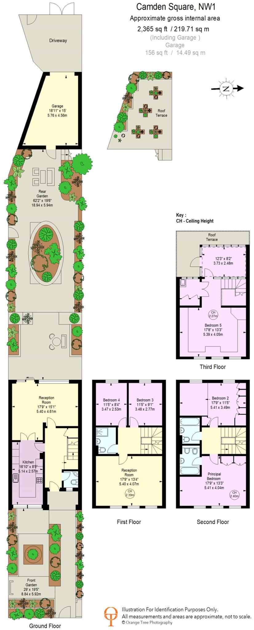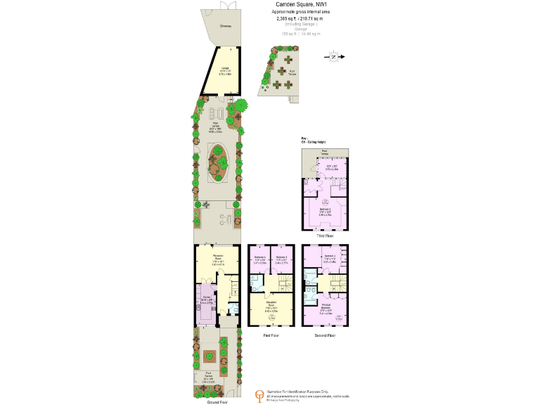 Nestled in a highly desirable area overlooking Camden Square Gardens, this charming five-bedroom family home offers an abundance of space and unique potential. Boasting a total of 2,365 square feet across four floors, the residence features a welcoming front garden, a large fully equipped kitchen, a reception room leading to a beautifully landscaped garden, and a garage. The first floor impresses with a second spacious reception room enhanced by large sash windows, with an additional three well-sized bedrooms and bathrooms throughout. The top floor offers versatility with a fifth bedroom that can serve as a work space or lounge leading to a stunning roof terrace.
