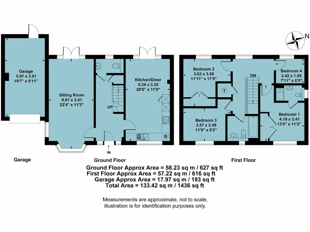 Upstairs, the master suite includes an ensuite bathroom, while the three additional bedrooms provide flexibility for family needs or home offices. With a lush, well-tended garden and a garage, the property also allows for potential expansion or renovation to suit personal styles.