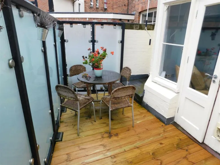 Set on the edge of Shrewsbury’s medieval town centre, this two-bedroom ground-floor apartment combines Georgian character with contemporary fittings. The open-plan lounge/kitchen is bright, features a bay window and French doors, and opens onto a private decked terrace — a rare outside space in the town centre.