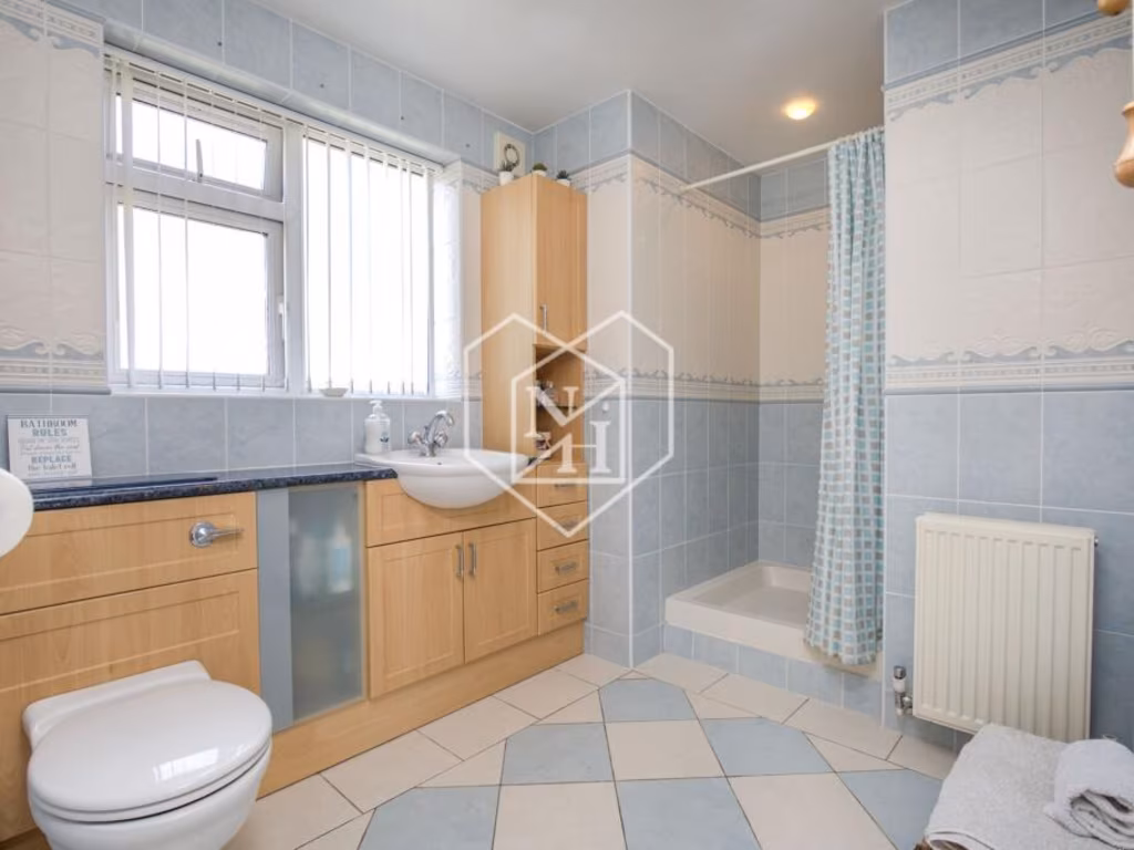 Upstairs are three further double bedrooms and a family bathroom with separate shower. The west-facing garden is private and sunny, ideal for outdoor living. Built in the 1950s–1960s with filled cavity walls and double glazing (installation date unknown), the house may benefit from some updating to windows or insulation over time.