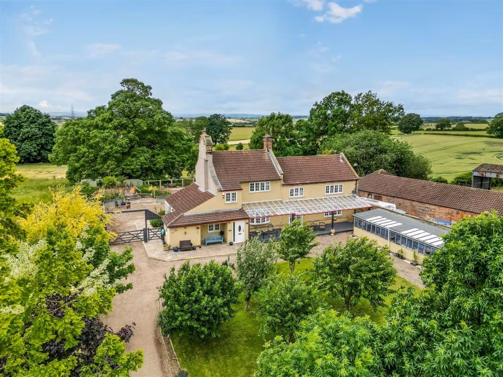 Set in a quiet hamlet, The Grange is a spacious period detached family home with expansive countryside views. The house offers generous reception rooms, two cosy wood-burning stoves, and a large kitchen/breakfast room with Aga and French doors opening to patio areas — ideal for family life and entertaining. The first-floor master bedroom features impressive exposed beams and an ensuite; a second double bedroom also has an ensuite wet room and sauna. Practical features include a useful study/ground-floor bedroom, utility room and substantial garage/workshop with hard standing. Practical considerations: heating runs from LPG and an oil boiler, drainage is to a septic tank, and cavity walls are assumed to have no insulation. Broadband speeds are reported as very slow and the property sits down a single-track lane, which suits buyers seeking privacy but may limit daily convenience. With very large gardens, a circular gravel driveway and potting shed, the plot will appeal to buyers wanting outdoor space and potential to adapt or upgrade energy efficiency. Council tax banding is above average.