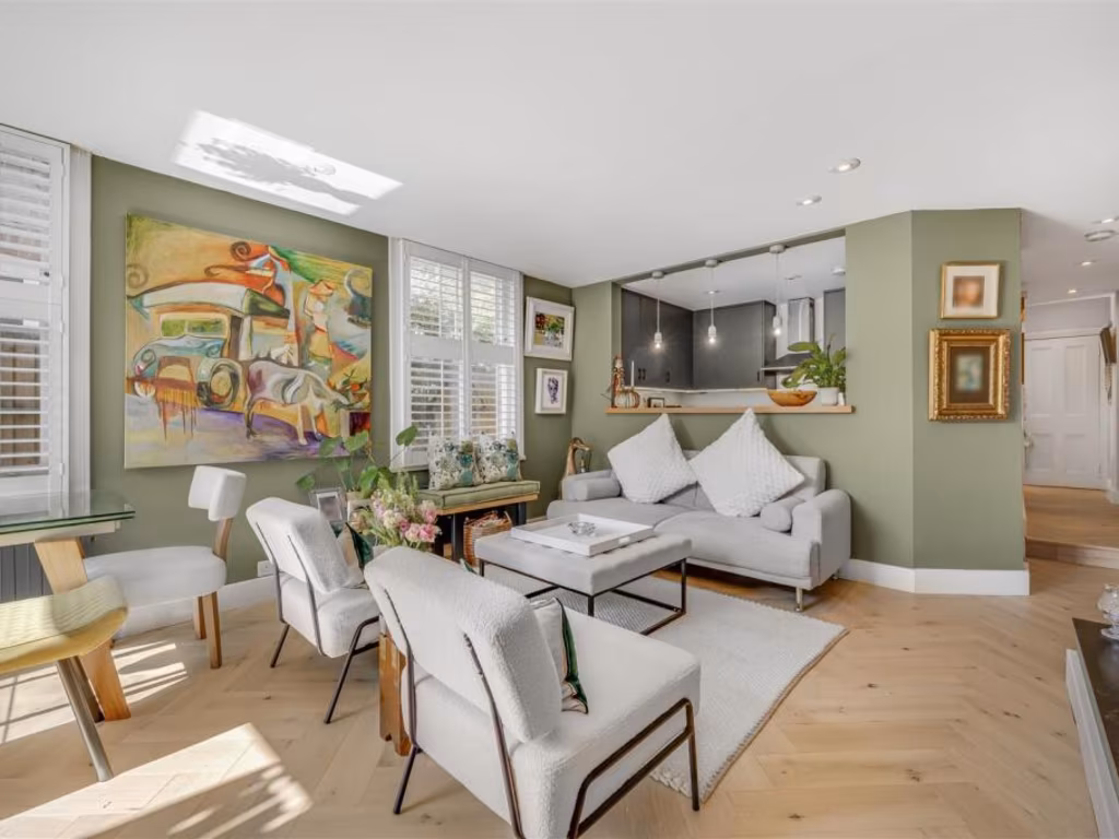 Considerations: the flat is average-sized and arranged in a long, narrow plan, so buyers seeking very large rooms or extensive lateral space should note the compact footprint. The building’s solid-brick walls are assumed to lack cavity insulation, so there may be scope for energy improvements. Crime levels are average and there is no dedicated parking mentioned.