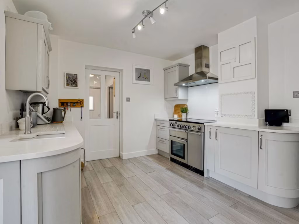 Set on a large private plot in sought-after Crick, this well-presented three-bedroom detached house combines generous living space with modern finishes. The recently refitted Shaker kitchen with quartz worktops sits at the heart of an impressive open-plan kitchen/dining/family room with full-height glazing and doors onto the rear garden — ideal for family life and entertaining.