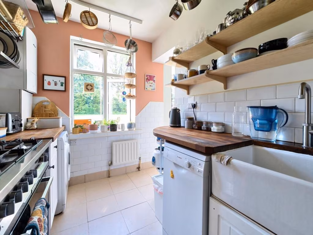 This bright and beautifully renovated ground floor flat, set in an appealing 1930s Art Deco building, invites you into a cozy, urban lifestyle in Penge, SE20. Enjoy stunning wooden flooring and an abundance of natural light in the spacious lounge, which offers direct access to a tranquil communal garden ideal for relaxation or entertaining. The modern kitchen, complete with ceramic sink and wooden worktops, alongside a stylish bathroom fitted just two years ago, ensures you move into a home that requires little to no maintenance.