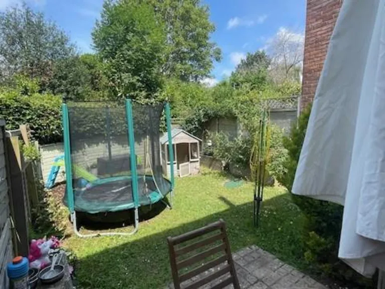 Upstairs are three bedrooms and a modern family bathroom; built-in wardrobes in the main rooms increase storage. Gas central heating, double glazing and a contemporary finish throughout make the property move-in ready. The garage in a nearby block provides secure parking and extra storage, though it is detached from the house.