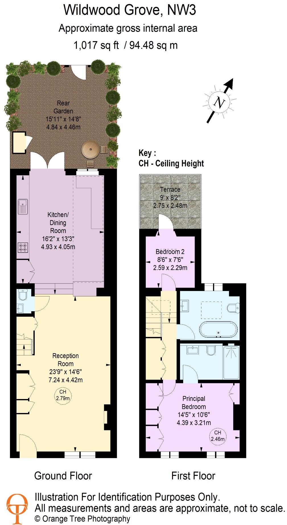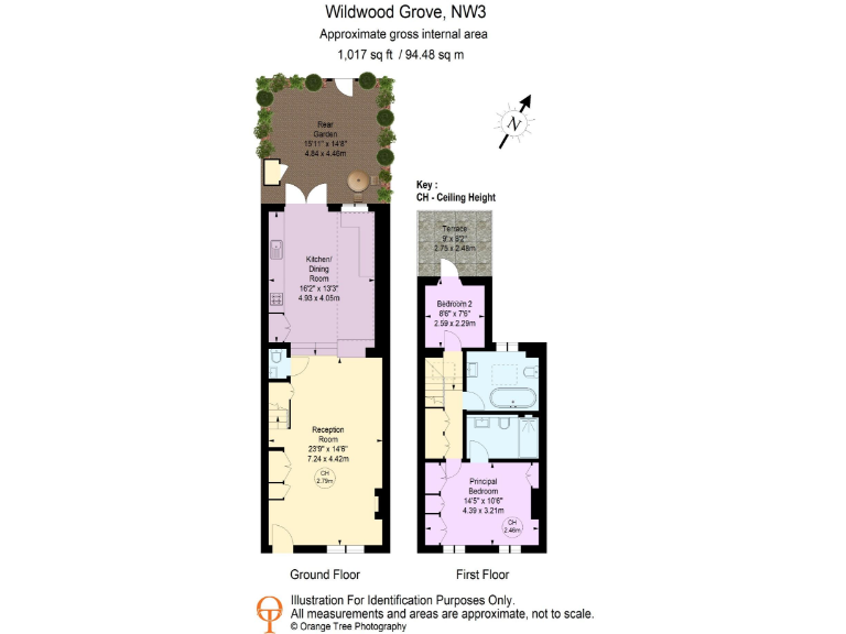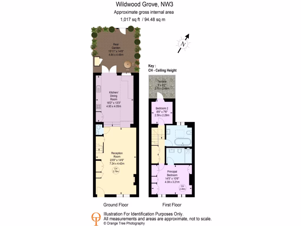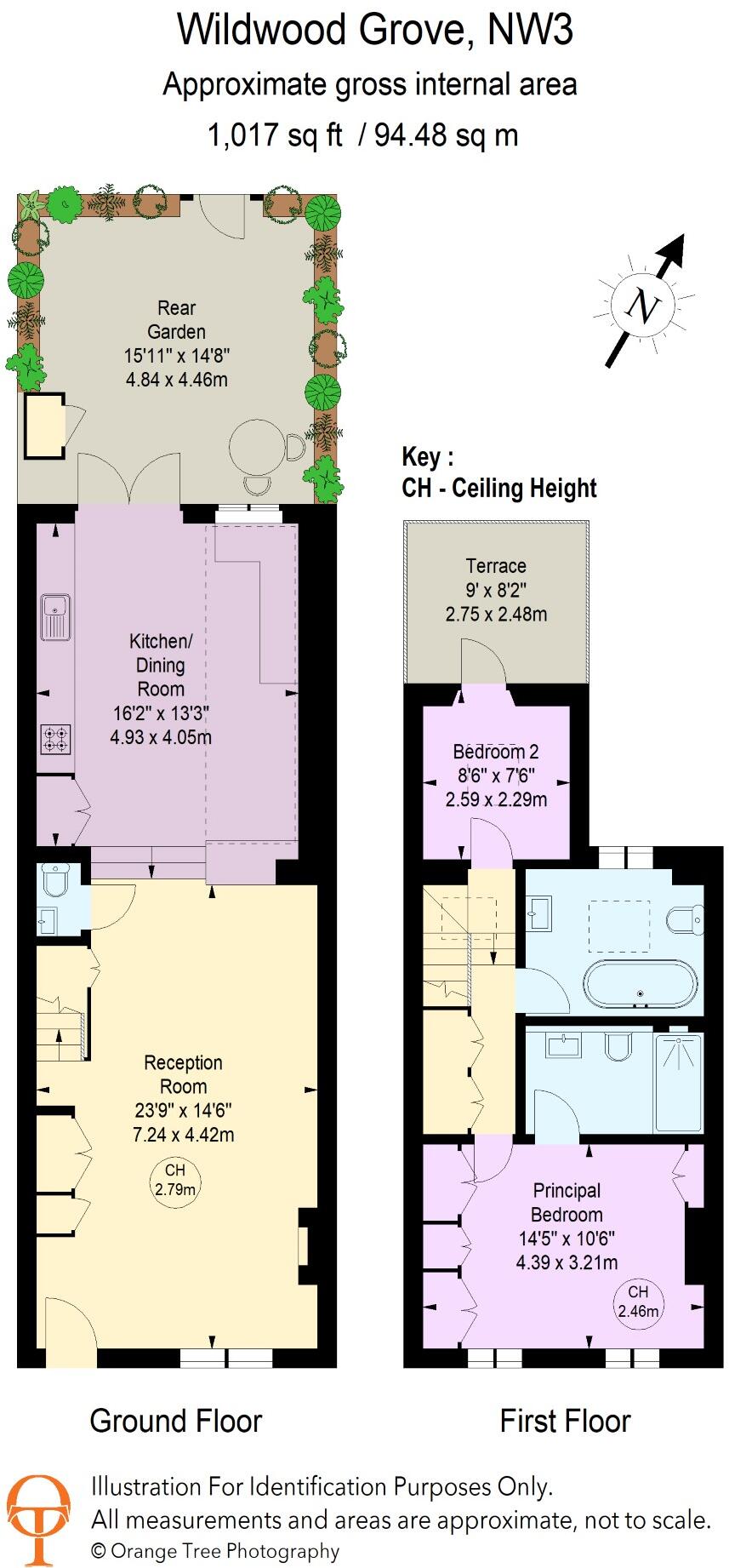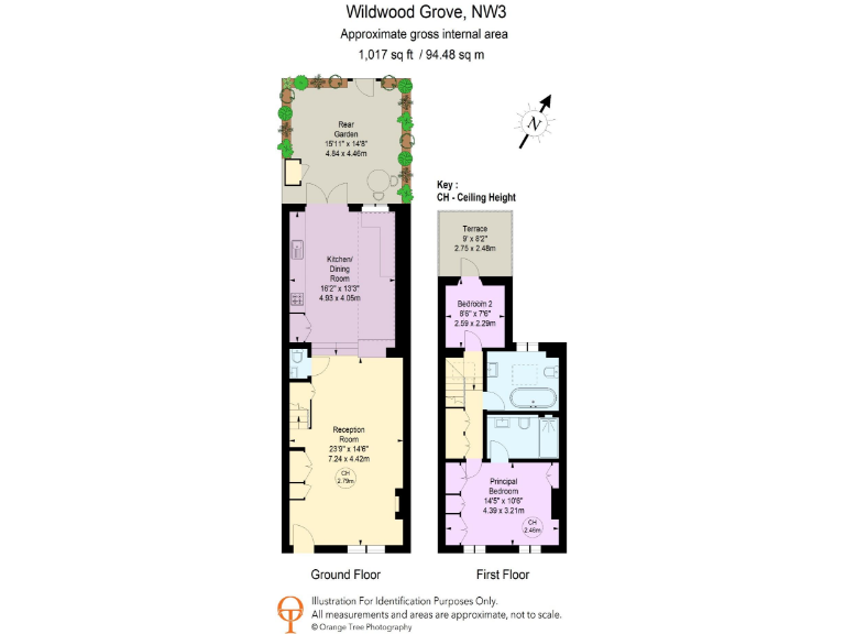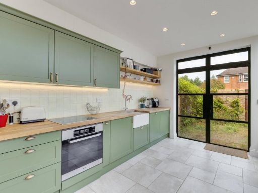 A beautifully renovated two-bedroom Victorian terrace on Wildwood Grove, offering contemporary open-plan living with period character. The ground floor flows from a bright reception into a fitted kitchen and dining area that opens directly onto a private patio garden with secure access to Hampstead Way. Upstairs the principal bedroom has an ensuite shower, there is a second bedroom, a generous family bathroom and a private roof terrace. Allocated off-street parking and residents’ parking add practical convenience in this sought-after NW3 location.