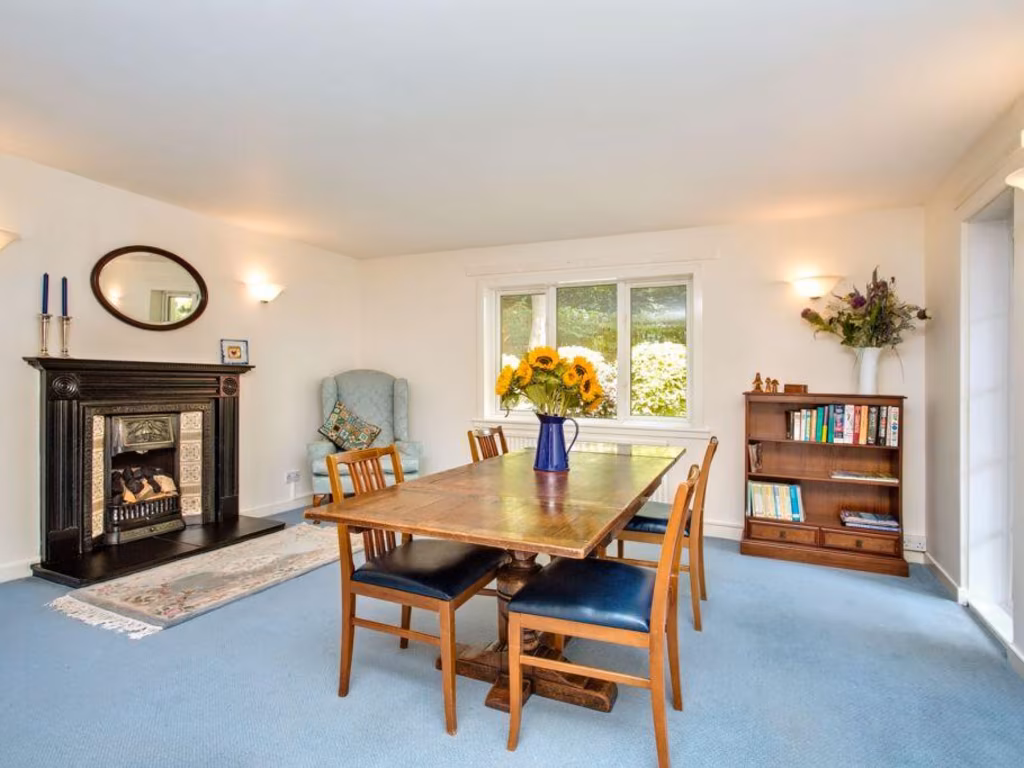 Three double bedrooms upstairs all have built-in storage and eaves access; a fourth bedroom and a bathroom on the ground floor suit guests or home-office use. The kitchen houses an LPG Aga that also provides the household’s water heating—efficient for character but important to note for fuel supply and servicing.