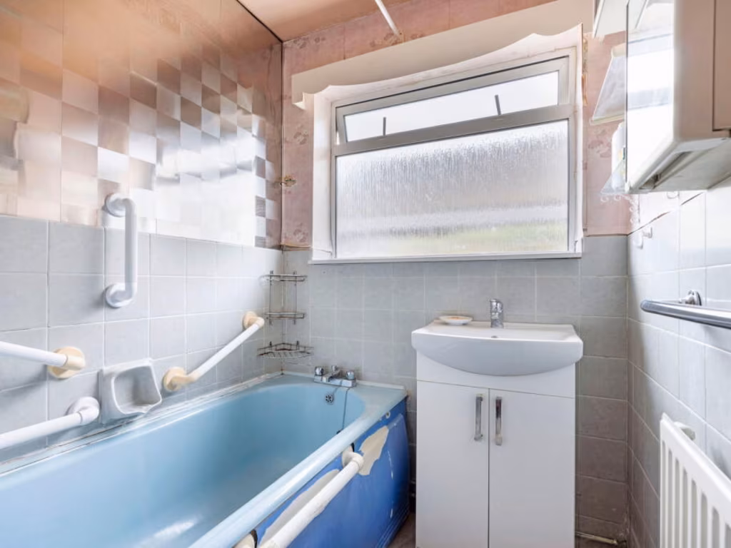 Internally the layout is traditional: separate living and dining rooms, kitchen, sunroom overlooking the garden, and three well-proportioned bedrooms. A large attic offers conversion potential subject to planning permission, creating space to increase living accommodation or add value. The bathroom includes mobility support features but will need modernisation to suit contemporary tastes.