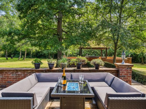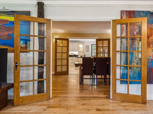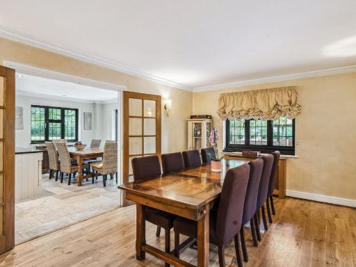 Discover the perfect blend of elegance and potential at Orleton House, a grand seven-bedroom detached residence nestled in the heart of desirable Ascot. Set within approximately 3 acres of meticulously maintained gardens, this home boasts multiple reception areas, including a spacious living room that seamlessly connects to formal dining and a well-equipped kitchen, all with beautiful garden access. The upstairs hosts five sumptuous bedrooms, four of which feature ensuites, while the master retreat offers a luxurious bath with a built-in TV and picturesque garden views.