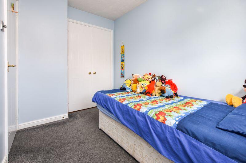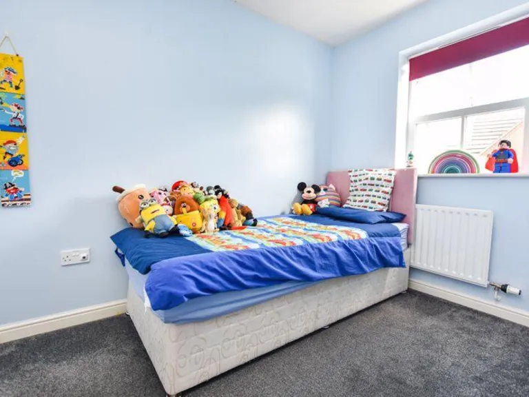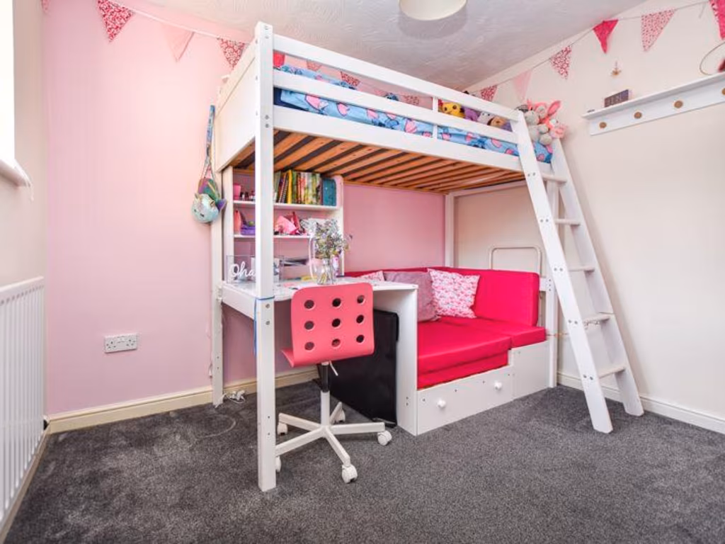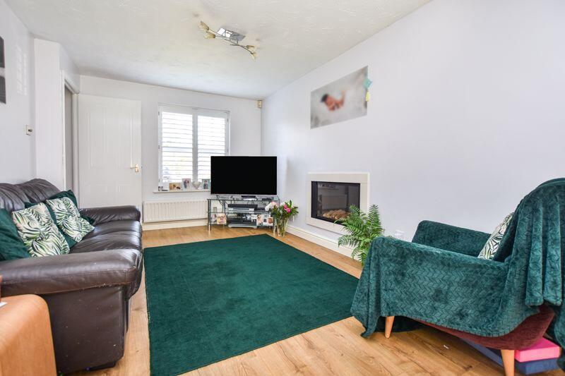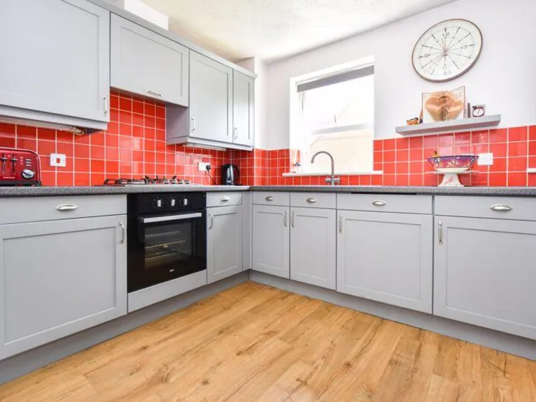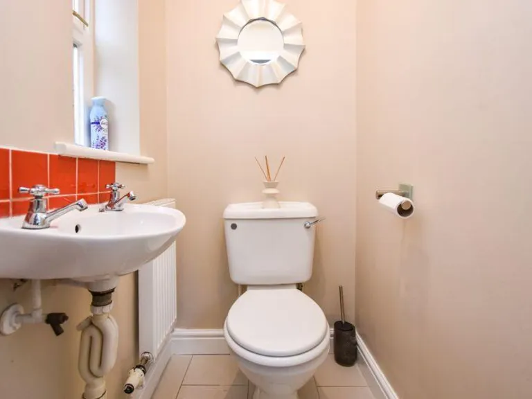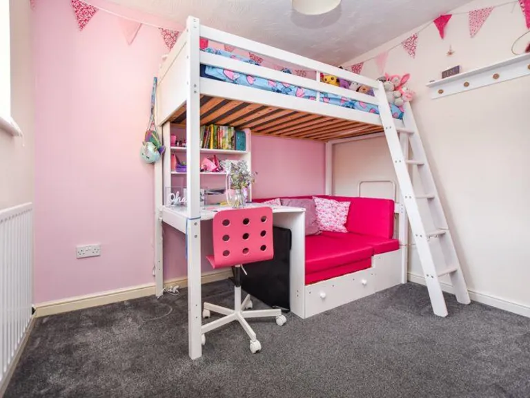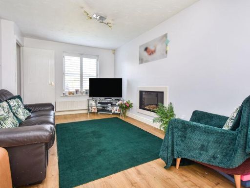 Upstairs, you’ll find three cozy bedrooms; the master includes a luxurious en-suite, and two bedrooms feature built-in wardrobes for organization. The enclosed rear garden provides a private oasis for relaxation and play. The single garage and additional driveway space ensure your family’s vehicles are secure.