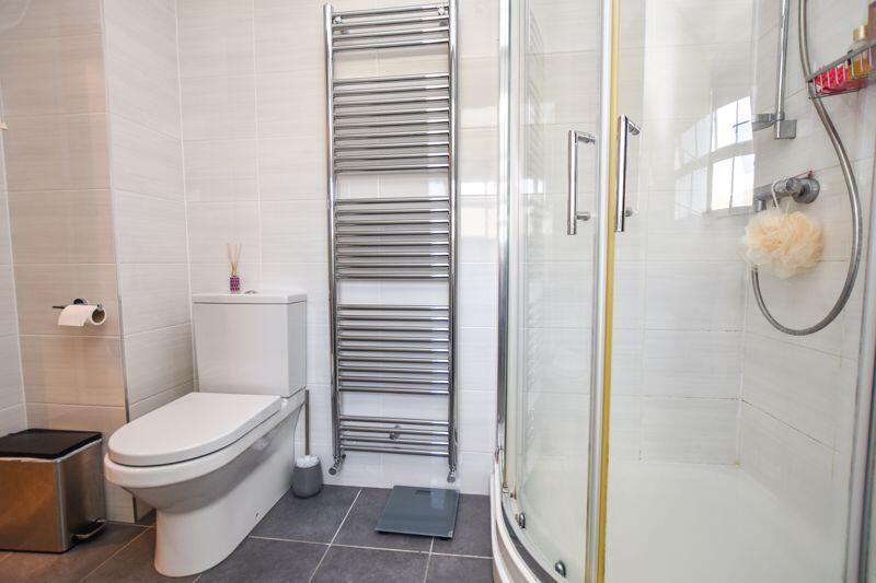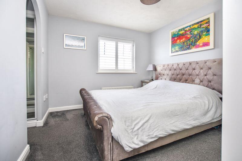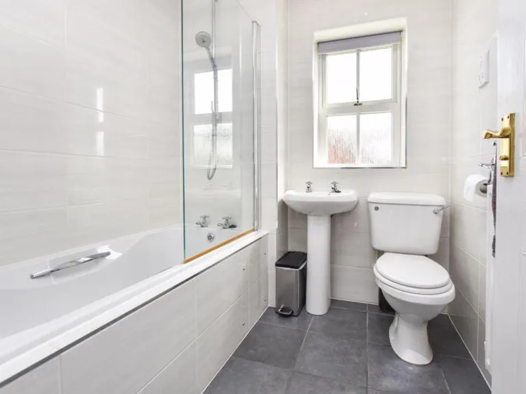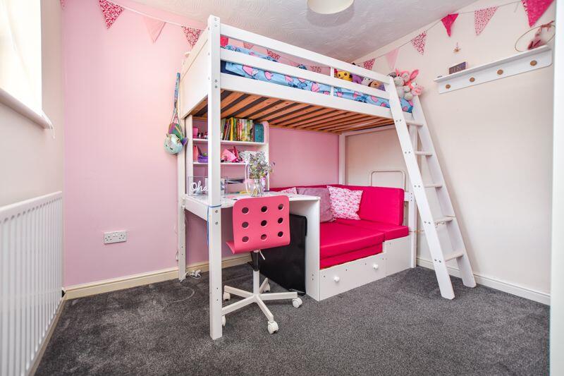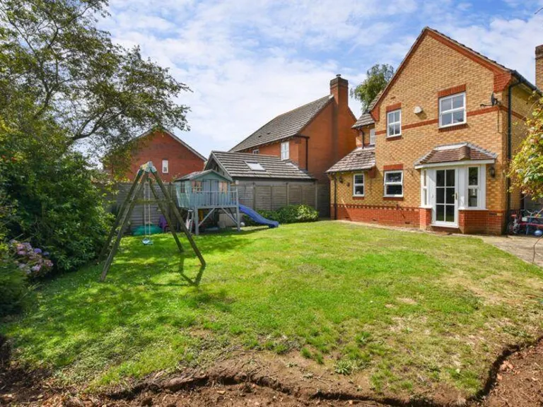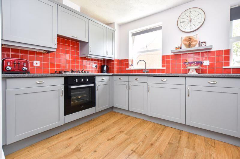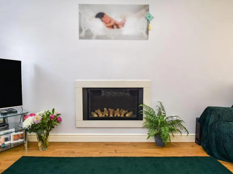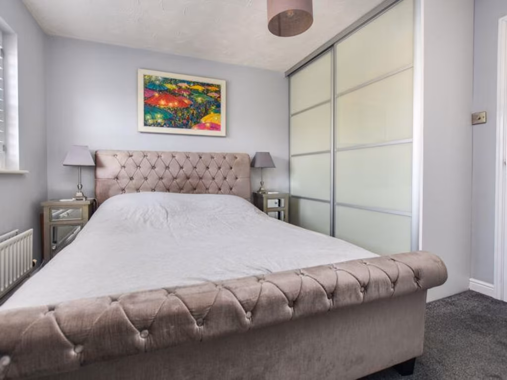 Upstairs, you’ll find three cozy bedrooms; the master includes a luxurious en-suite, and two bedrooms feature built-in wardrobes for organization. The enclosed rear garden provides a private oasis for relaxation and play. The single garage and additional driveway space ensure your family’s vehicles are secure.
