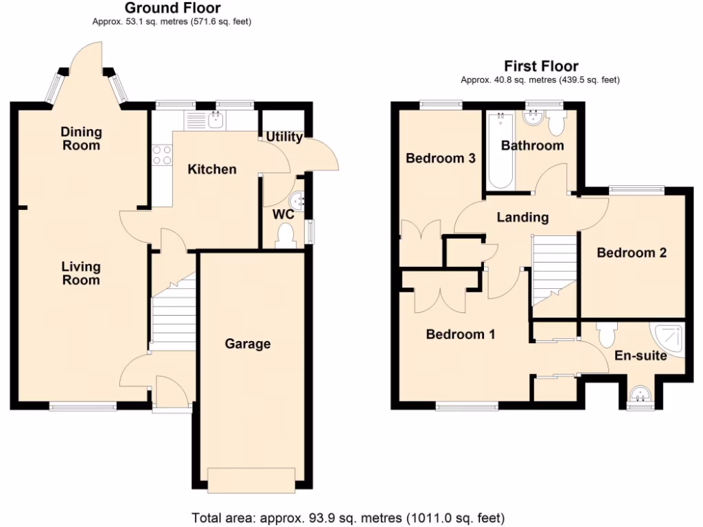 This charming three-bedroom detached family home is an ideal fit for those seeking comfort and practicality in a peaceful village setting. With a total of 1,011 square feet, the property boasts a spacious living room that opens seamlessly into a dining area, perfect for entertaining friends and family. The kitchen is functional, accompanied by a convenient utility room, while the downstairs WC adds to the ease of living.