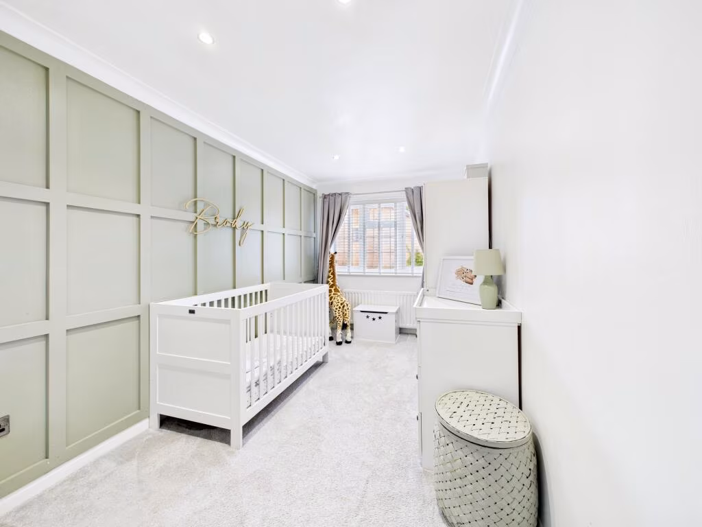 Perfect for growing families, this four-bedroom detached home in Allesley Green combines generous living space with modern finishes. The ground floor opens from a welcoming living room into a large open-plan kitchen, dining and living area fitted with high-quality units, sleek tiling and striking black doors. A sizeable utility room, downstairs WC and under-stairs storage add practical everyday convenience.