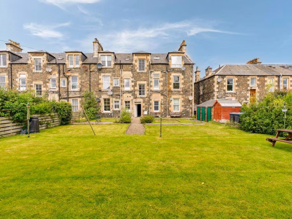 This bright two-bedroom ground-floor flat sits in a handsome C-listed Victorian building in central Peebles. Finished in neutral tones and described as being in excellent decorative order, the property combines period character — sash windows, varnished floorboards and a focal fireplace — with practical updates such as gas central heating and secondary glazing to most windows.