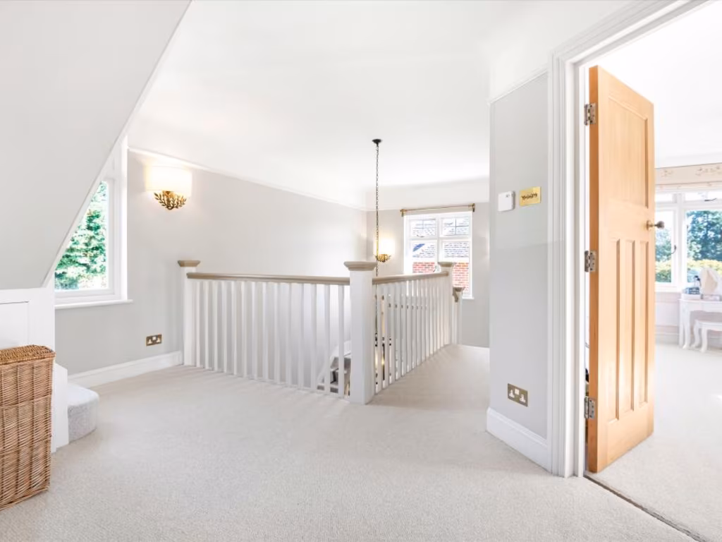 An impressive six-bedroom detached house in Henley-on-Thames, recently restored and extended to provide around 3,500 sq ft of family-focused living across four floors. The layout includes three reception rooms, a high-spec open-plan kitchen and dining area with underfloor-heated limestone, and a lower-ground self-contained annexe with its own entrance — ideal for guests, staff or rental income. A roof terrace with frameless glazed balustrade and planning permission for external stairs provides private, direct garden access and effortless entertaining flow.