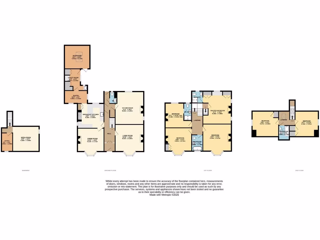 - Up to six bedrooms plus a study