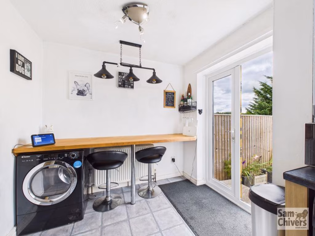 This neat two-bedroom mid-terrace sits at the end of a quiet cul-de-sac in Radstock, offering an easy-to-manage home for a first-time buyer or couple. The ground floor has an entrance lobby, lounge with front window and useful under-stair storage, plus a kitchen-dining room that opens onto a sunny south-facing garden.