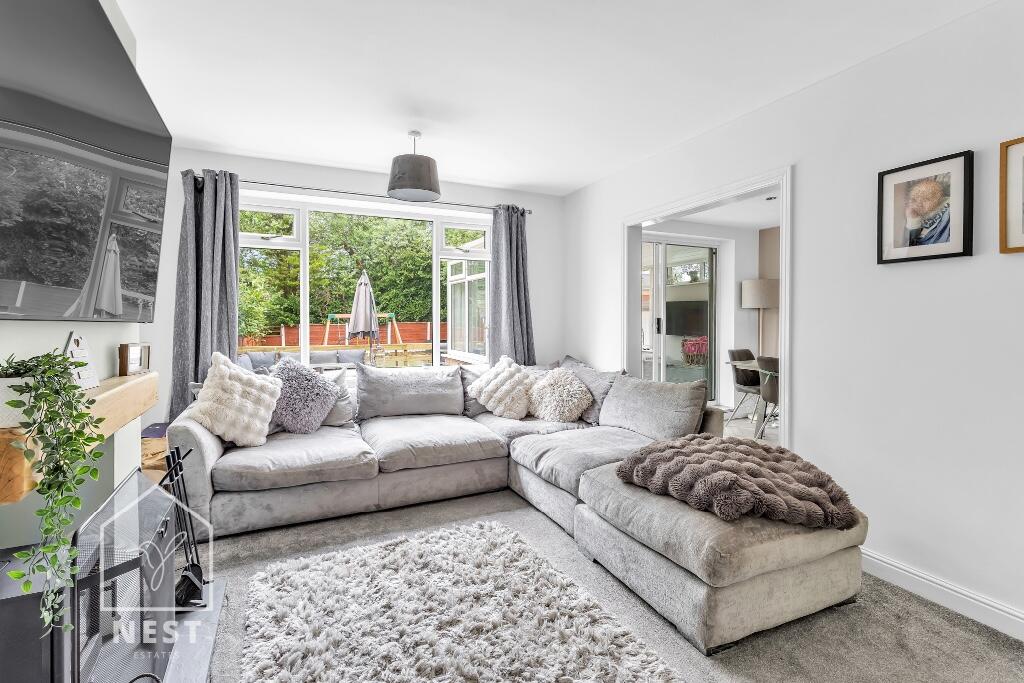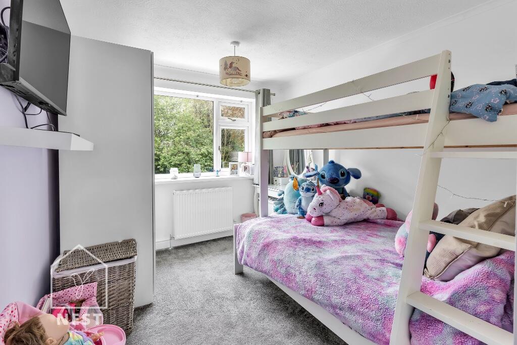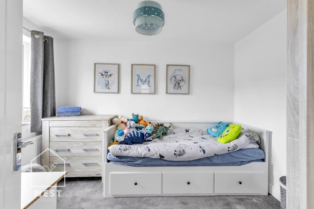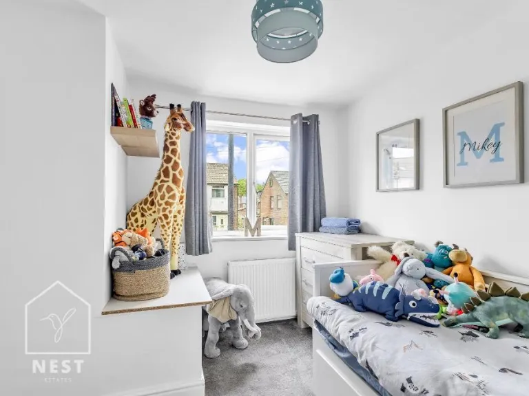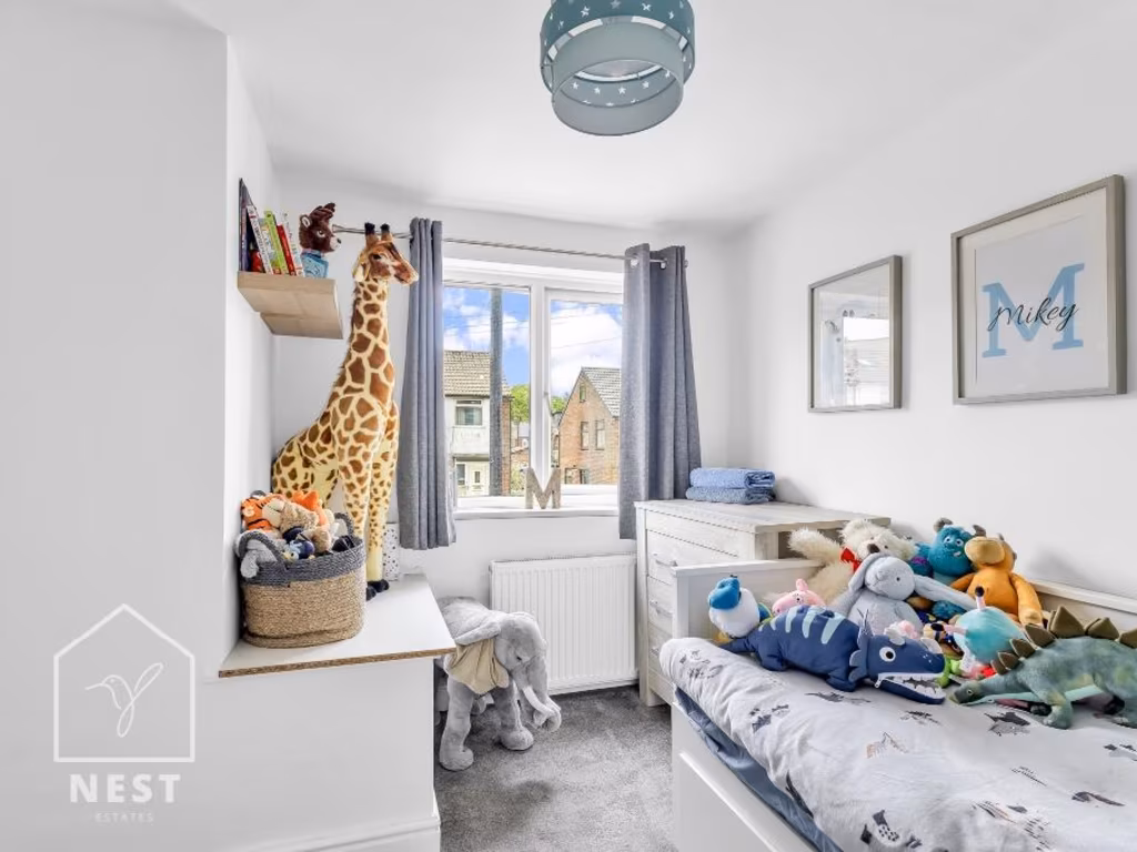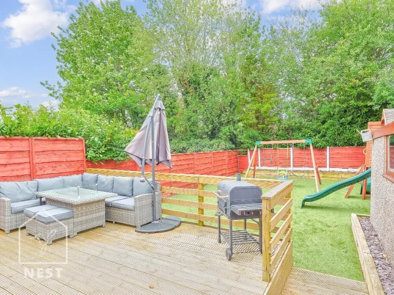 Outside, the property benefits from a generous private rear garden with patio and lawn, plus a wide driveway for multiple vehicles and a single garage. The plot size and garden make this an excellent choice for young families who want outdoor space and room to grow.
