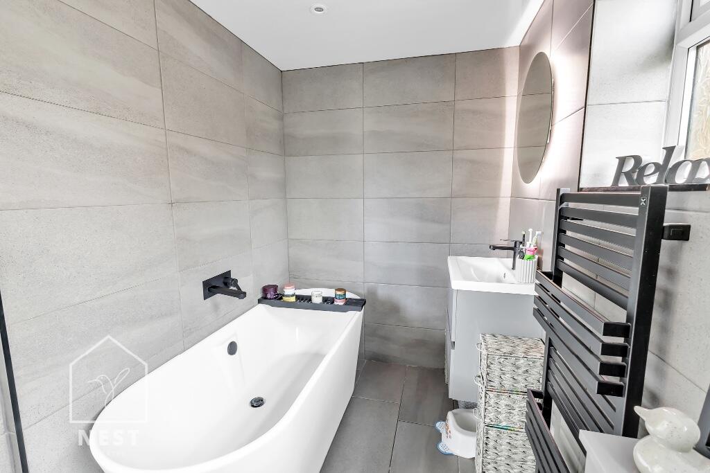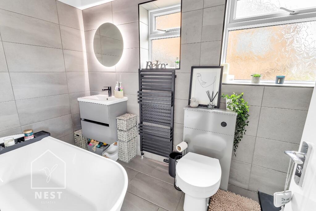 This immaculately presented three-bedroom semi-detached home has been fully renovated to a high standard and offers comfortable family living across well-proportioned rooms. The ground floor features an entrance hall, lounge, modern dining kitchen and conservatory; upstairs are three double bedrooms and a large family bathroom with separate shower and bath. A new roof and contemporary finishes reduce immediate maintenance needs.