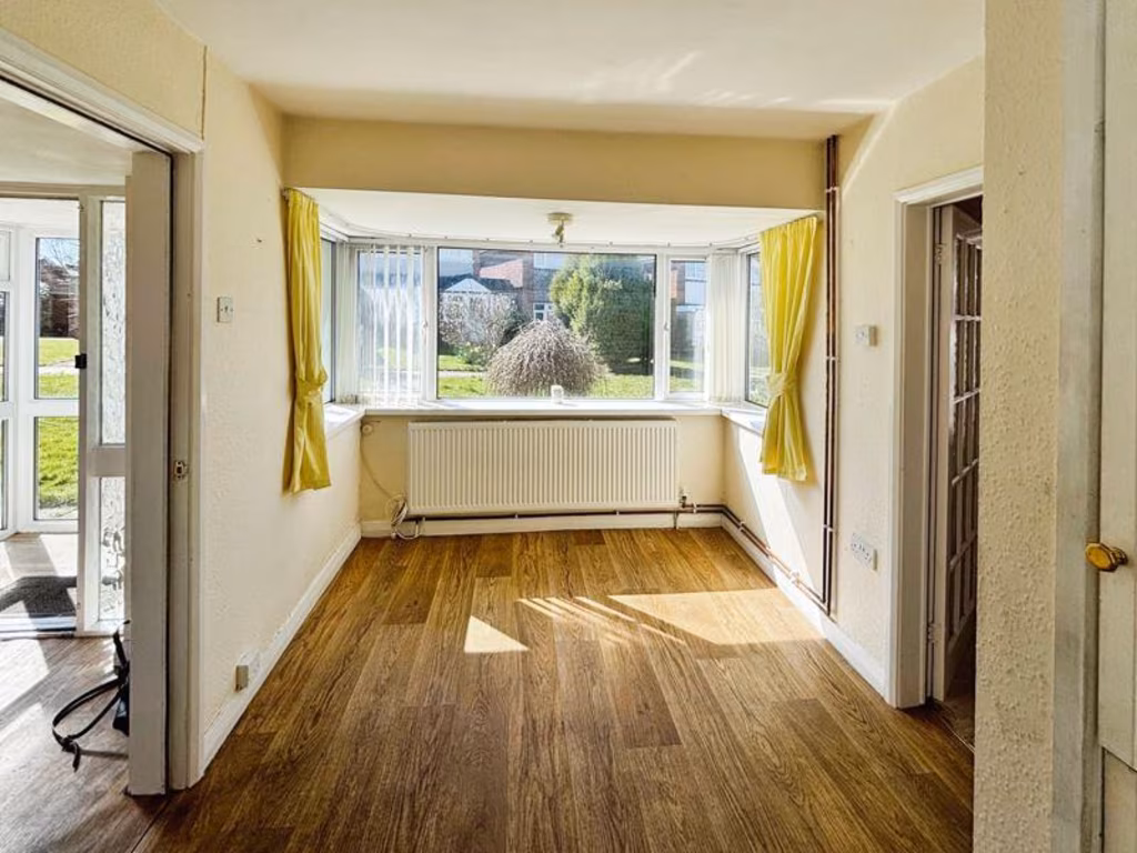 This detached single-storey bungalow sits on a large corner plot in a popular Aldridge neighbourhood, offering the convenience and comfort of single-floor living. The layout includes an open-plan kitchen/dining room, separate living room, two double bedrooms and a bathroom — straightforward accommodation suited to downsizers or buyers wanting a manageable home.