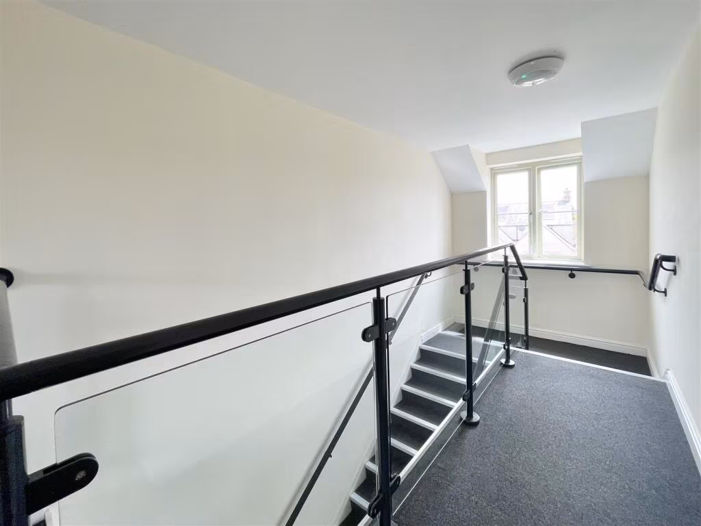 A compact, chain-free two-bedroom apartment located within walking distance of town amenities, shops and transport links. The apartment offers a bright dual-aspect living room, contemporary fitted kitchen and a bathroom with bath and shower — all in move-in condition and heated by gas central heating. Allocated off-street parking and fast broadband/multiple mobile bars are practical benefits for day-to-day living.