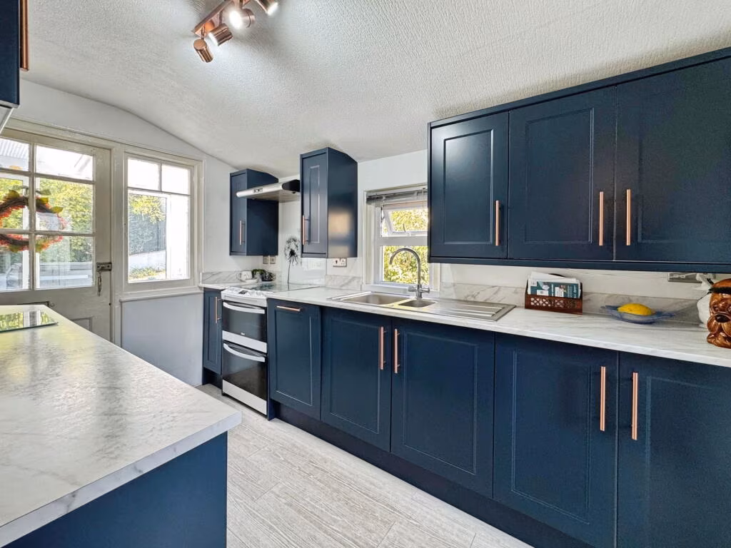 Outside is a standout feature: a large, south-facing garden with multiple seating areas, an apple tree and a greenhouse, offering excellent entertaining and growing potential. Driveway parking for two cars and side access to the rear add practical convenience. The location balances tranquillity with accessibility: quiet cul-de-sac living yet close to Minehead town, seafront and Exmoor walks.