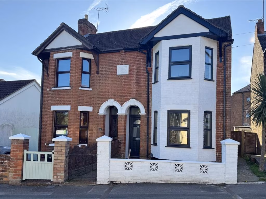This recently refurbished three-bedroom semi-detached home in Aldershot’s West End offers an immediately liveable family layout with period character and contemporary finishes. Ground floor reception rooms, a modern kitchen and a cloakroom give practical daily space, while a converted loft provides useful extra accommodation for a study, playroom or occasional bedroom.