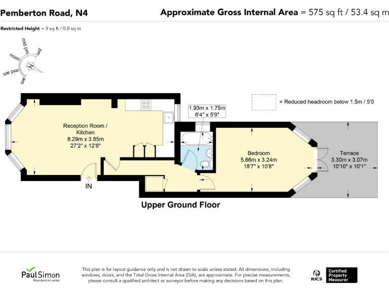 - High ceilings and bright, spacious reception/kitchen