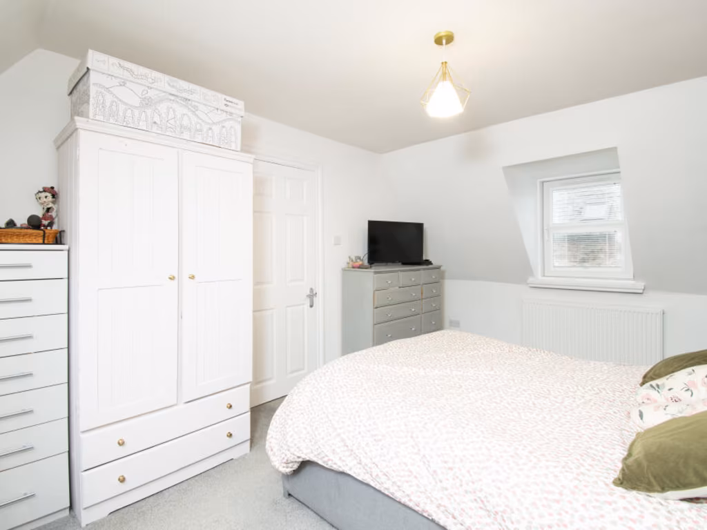 The layout works well for single buyers or couples: the main bedroom is a generous, dual-aspect room, while the second bedroom and well-proportioned bathroom sit on the upper floor. The house-style entrance from the High Street leads to an internal staircase and a compact entrance courtyard for bins — there is no private garden. On-street parking and nearby public car parks are available, and Montrose station is a short walk away, making commuting straightforward.