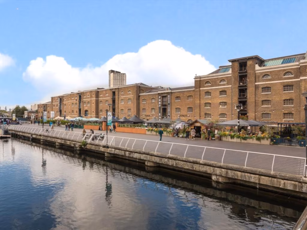 Set within one of the Docklands’ remaining Grade I listed warehouse conversions, this duplex penthouse blends industrial character with generous living space. The open-plan reception and kitchen are defined by high wooden-beamed ceilings, exposed brickwork and abundant natural light, while a winter patio terrace provides sheltered outdoor space year-round. At approximately 1,420 sq ft, the layout includes three bedrooms and three bathrooms across two floors, suitable for a family or professionals wanting space and character near Canary Wharf.