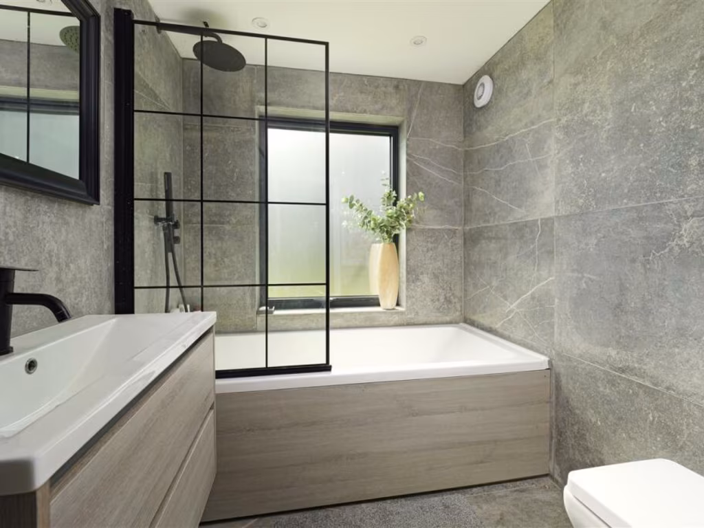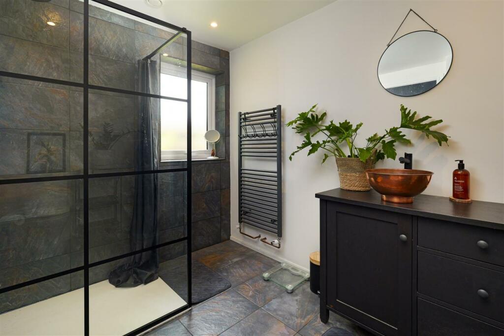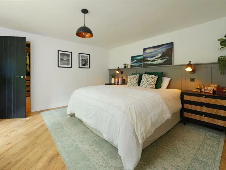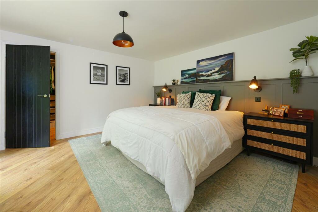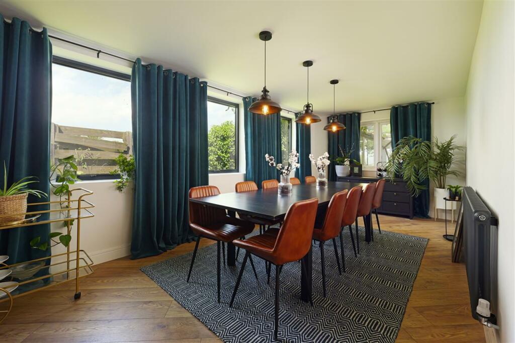 This striking detached bungalow has been transformed into a stunning residence that beautifully blends innovative architecture with creative interior design. Spanning approximately 5,000 square feet, this home offers four spacious bedrooms, including a principal suite with a luxurious ensuite bathroom and private garden access with a hot tub. The open-plan living areas, adorned with large wood-burning stove and contemporary finishes, flow seamlessly into a spectacular kitchen featuring vaulted ceilings and an inviting mezzanine area.