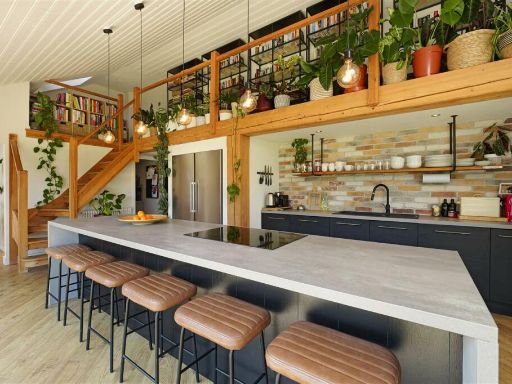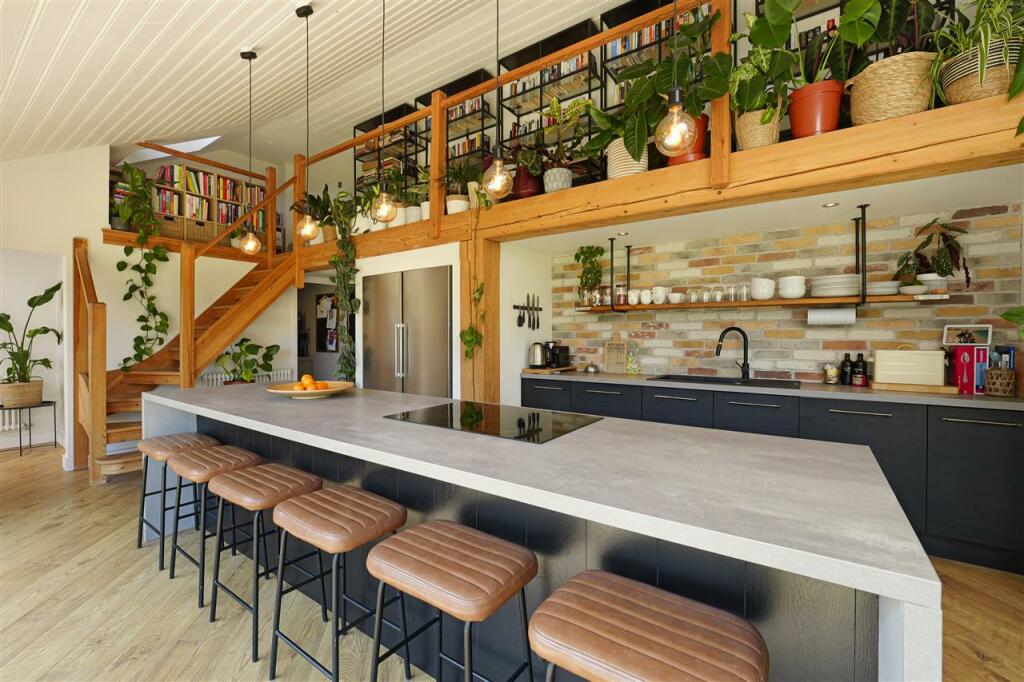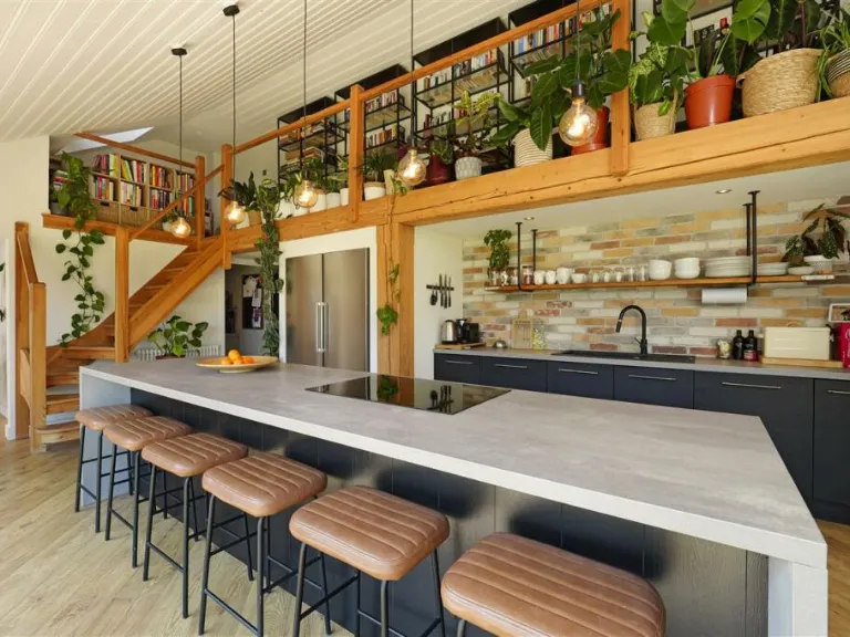- Large kitchen with vaulted ceilings and mezzanine landing