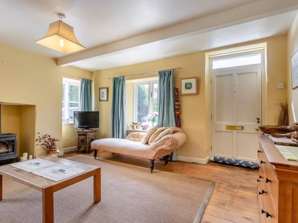 A roomy Victorian detached house set in sweeping countryside near Raglan, offering generous living space across multiple reception rooms and four double bedrooms. The principal suite includes an en‑suite; two further bathrooms and flexible reception space make this a comfortable family home. Large windows, high ceilings and a stone fireplace with wood‑burning stove retain period character while an Aga anchors the kitchen. Heating is by air‑source heat pump with radiators and electric backup.