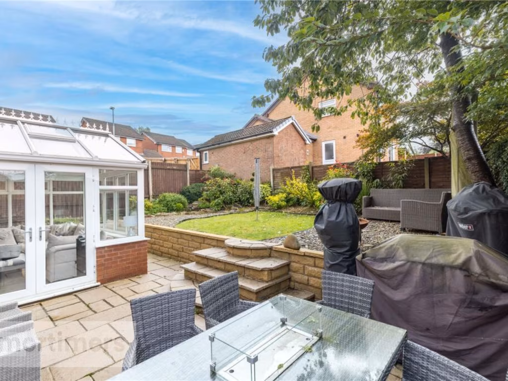 A spacious three-bedroom detached house on a family-friendly development in Accrington, offering a generous internal footprint and stylish, contemporary finishes. The ground floor features an open-plan kitchen with island, a living room with log burner, a conservatory overlooking the private rear garden and a useful downstairs WC. Upstairs are two double bedrooms, a single bedroom and a large four-piece bathroom.