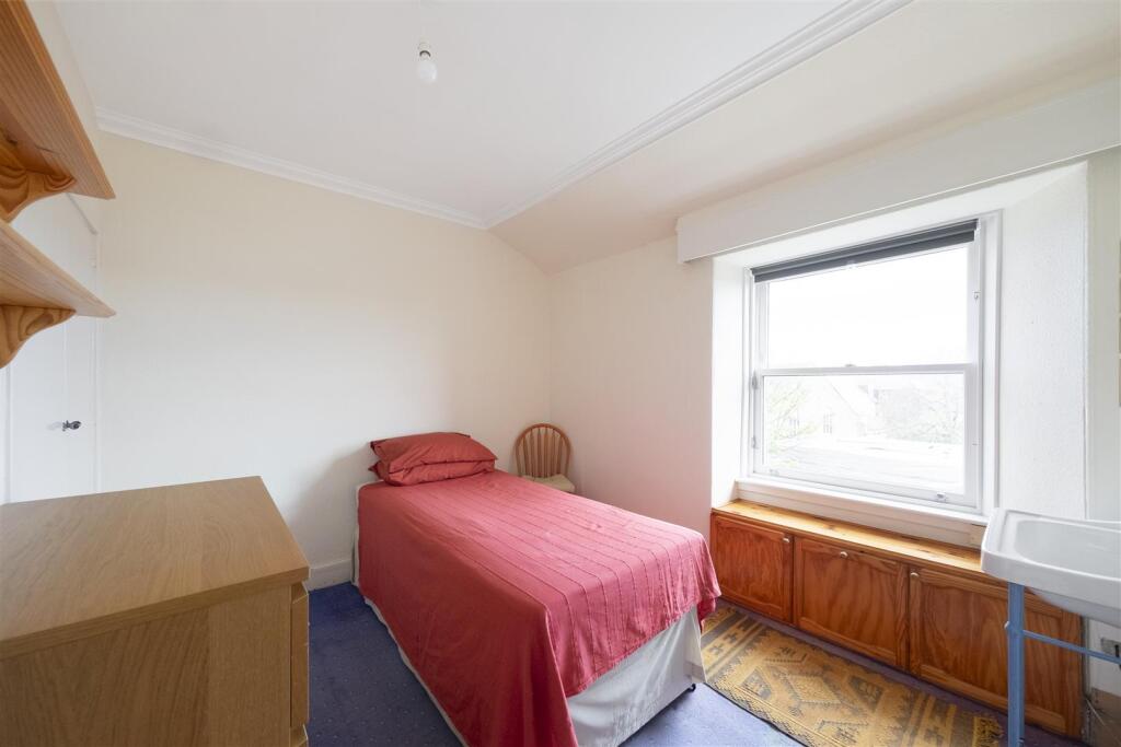 Set on the top floor of a Victorian townhouse in a Conservation area, this two-bedroom flat offers central St Andrews living a short walk from university, shops and golf facilities. The open-plan lounge/diner with picture window and feature fireplace creates a bright social space; the kitchen includes integrated hob and oven plus room for freestanding appliances. Both bedrooms are doubles with built-in wardrobes and pleasant views over town spires.