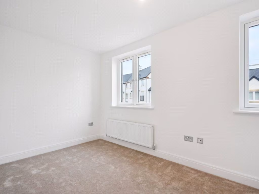 Modern three-bedroom village home with garden and parking for first-time buyers.