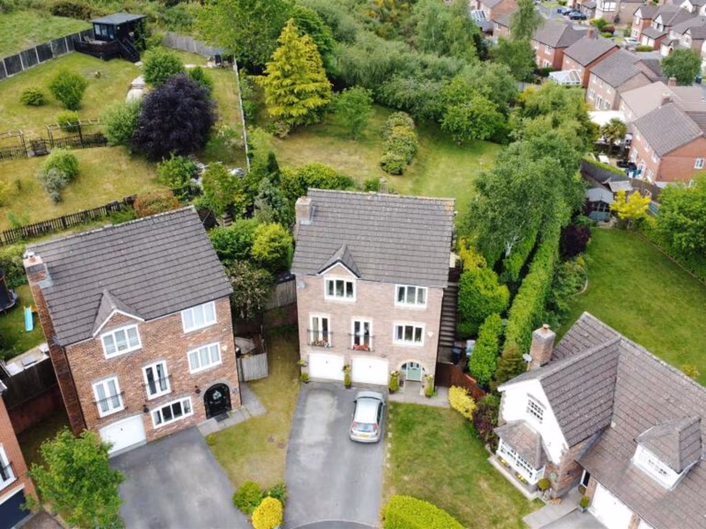 Set on a large plot at the end of a quiet cul-de-sac, this detached three-storey home delivers generous family accommodation with far-reaching countryside views. The sitting room opens to a Juliet balcony, and a bright conservatory adds a light-filled informal living space that overlooks the lawned garden. A double garage and a tarmac driveway for up to four vehicles answer parking and storage needs easily.