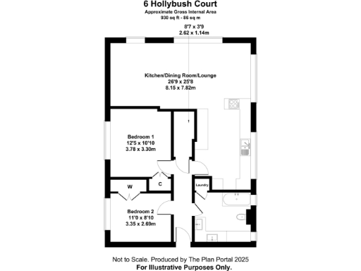 - Total size: 930 sq ft, with 2 double bedrooms and 1 bathroom