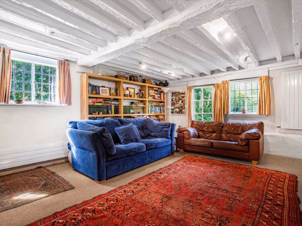 Moreton Thatch is a rare Grade II listed Tudor cottage sympathetically renovated and extended to provide about 2,093 sqft of family living. The house combines original timber framing, exposed beams and fireplaces with a contemporary wing offering vaulted, light-filled spaces and a ground-floor double bedroom with en suite — useful as a guest suite or self-contained annexe.