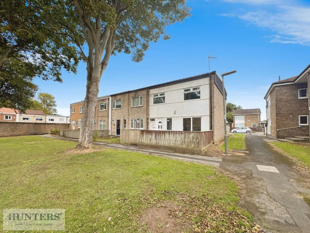 This three-bedroom end-of-terrace home on Hatfield Place offers practical family living with direct access to Castle Eden Nature Reserve. The layout includes a modern fitted kitchen, open-plan lounge and dining area with patio doors to a low-maintenance rear courtyard, ground-floor cloakroom and a family bathroom upstairs. A detached single garage plus off-street parking add useful storage and parking capacity for a compact footprint of about 958 sq ft.