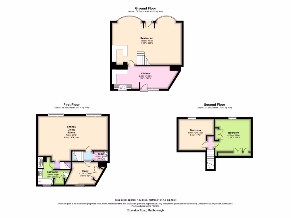 This Grade II listed mid-terrace townhouse on London Road offers 1,548 sq ft of flexible space in the heart of Marlborough. Large, light rooms and exposed timber beams give the house strong period character; the spacious ground floor previously operated as a café/restaurant and could suit a return to commercial use or a mixed residential/commercial layout. The rear courtyard garden is terraced and sheltered, with a substantial timber outbuilding suitable as storage or a home office.