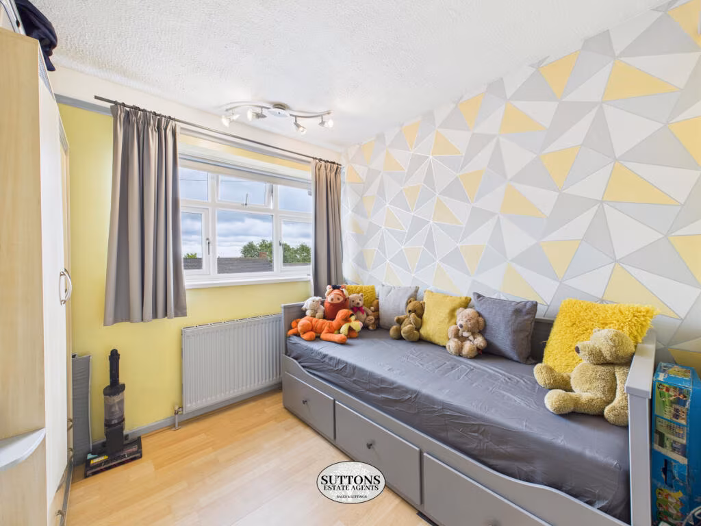 The layout works well for first-time buyers or young families: two double bedrooms plus a smaller third room, an open-plan lounge/dining area and a single family bathroom. Local amenities, several ‘Good’ rated primary schools and quick access to the A45/M6 add commuter convenience and everyday practicality.